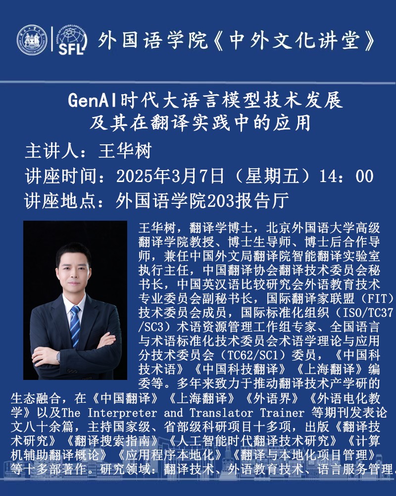 3月7日讲座预告: GenAI时代大语言模型技术发展及其在翻译实践中的应用