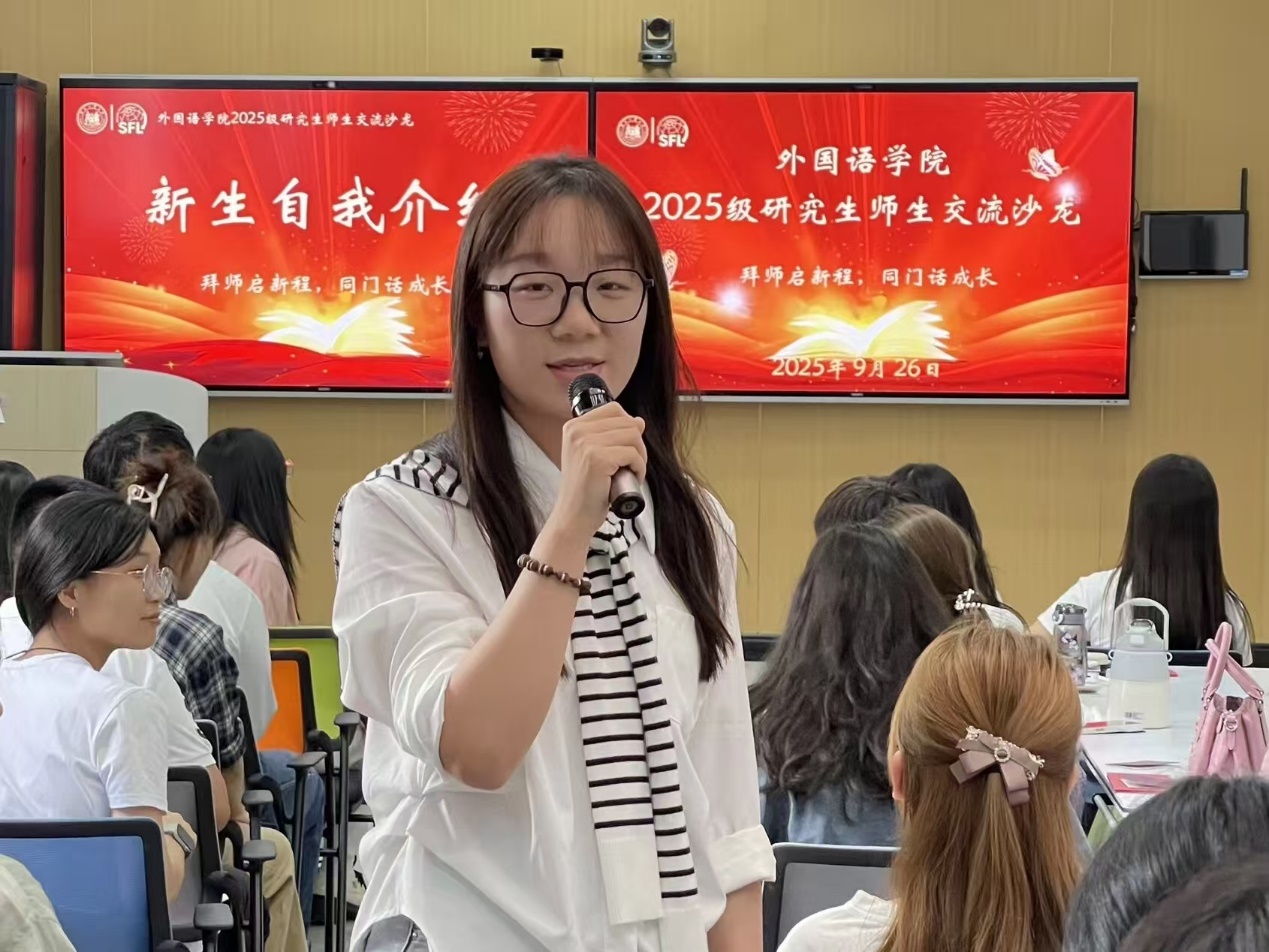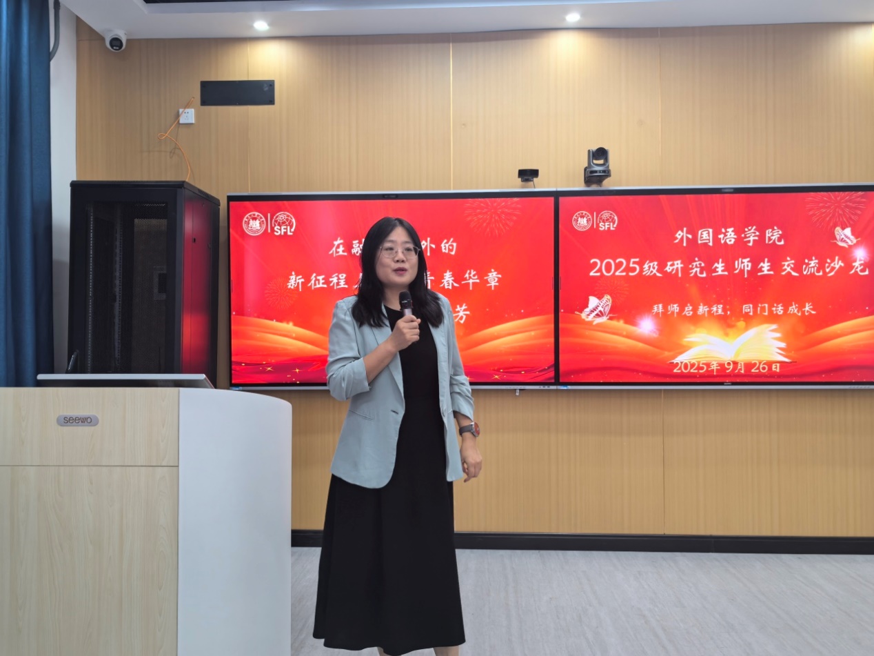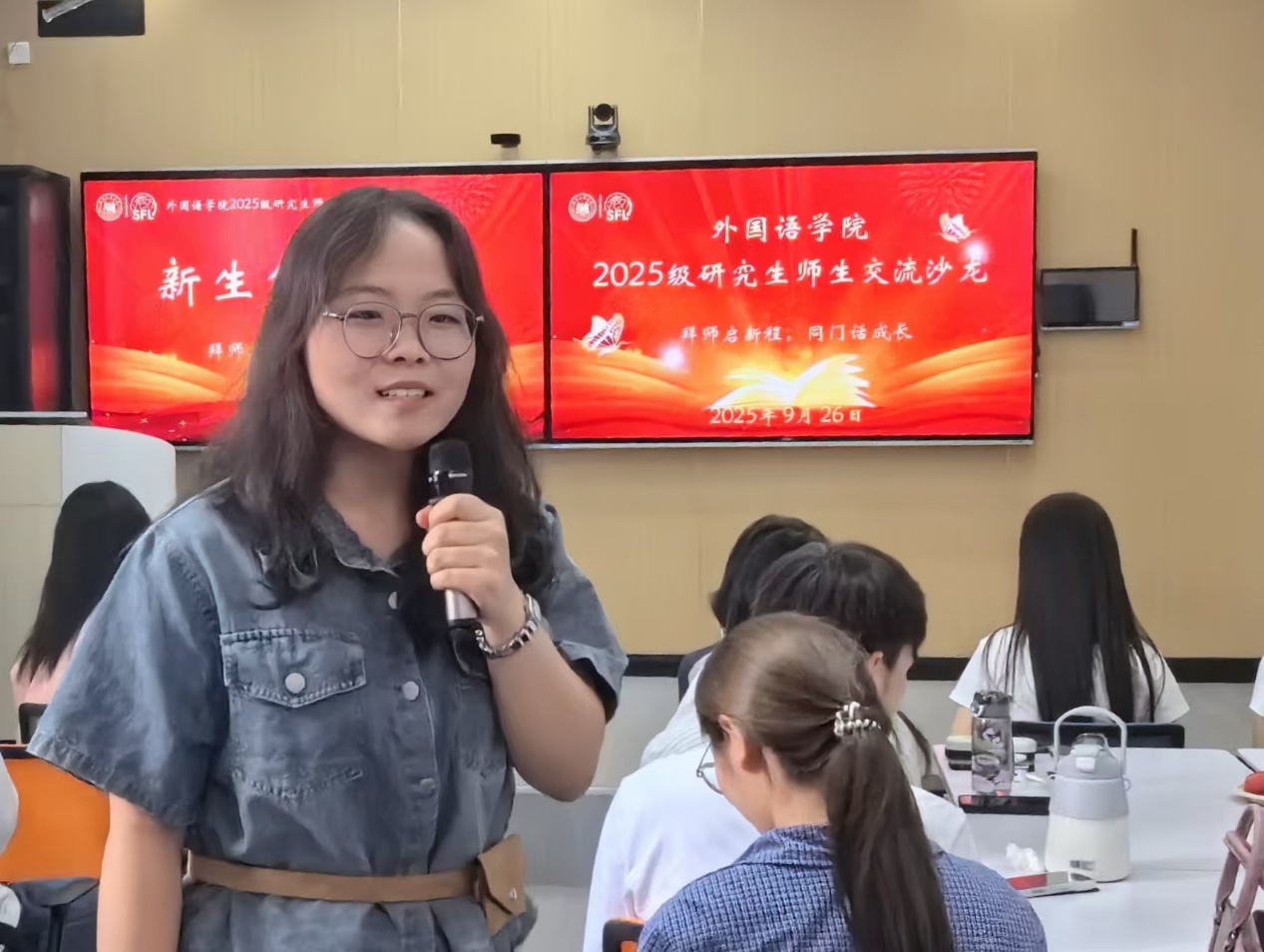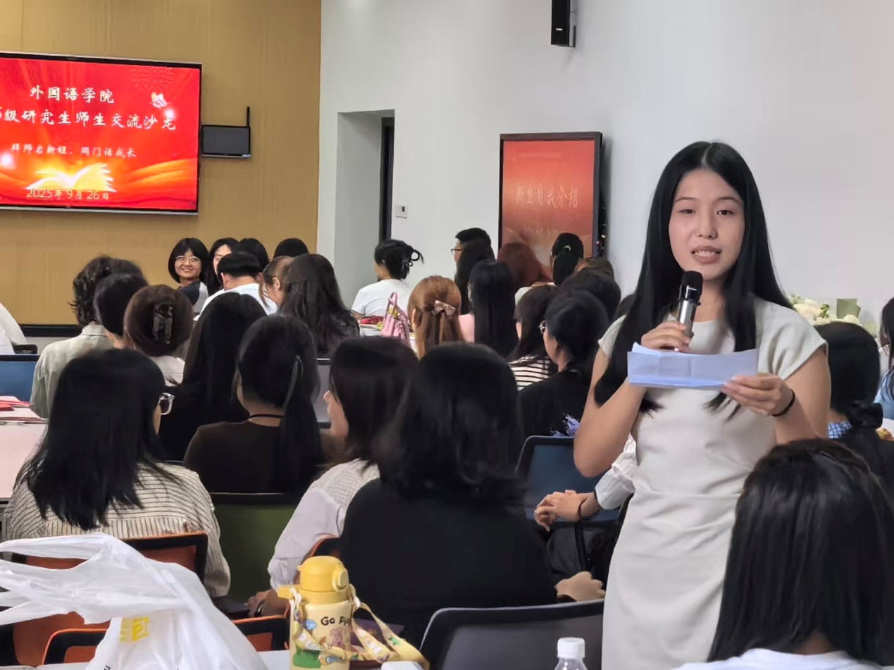 沙龙伊始,院长石梅芳教授对2025级研究生新生加入外国语学院大家庭表示祝贺和热烈欢迎。她希望大家在今后的学习生活中明确目标、坚定追求,学有所获、学有所成。石老师还为大家详细讲解了毕业与学业授予分离实施的相关规定,开启研究生“开学第一课”。