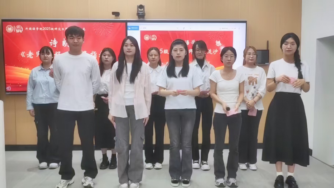 新生还带来原创诗朗诵《老师您好,请多指教》,用真挚的语言表达了对研究生生活的期待和对导师未来指导与陪伴的感激之情。