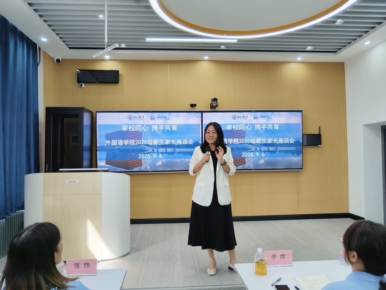 学校领导与学院领导老师们深入新生报到一线,迎接各位新生的到来,并与新生及家长进行亲切交流。为做好新生的家校共育工作,学院在新生报到日便组织开展了2025级新生家长座谈会,学院院长石梅芳、党委副书记兼副院长李辉、全体辅导员老师及73名新生家长参加。会上,围绕学院“五育并举”育人理念和“三全育人”工作思路,详细地向家长们汇报了学院在师资力量、人才培养、校园生活、就业举措等方面的情况,并就家长关心关切的问题进行了耐心解答。