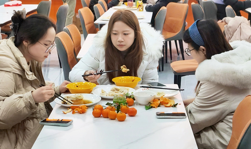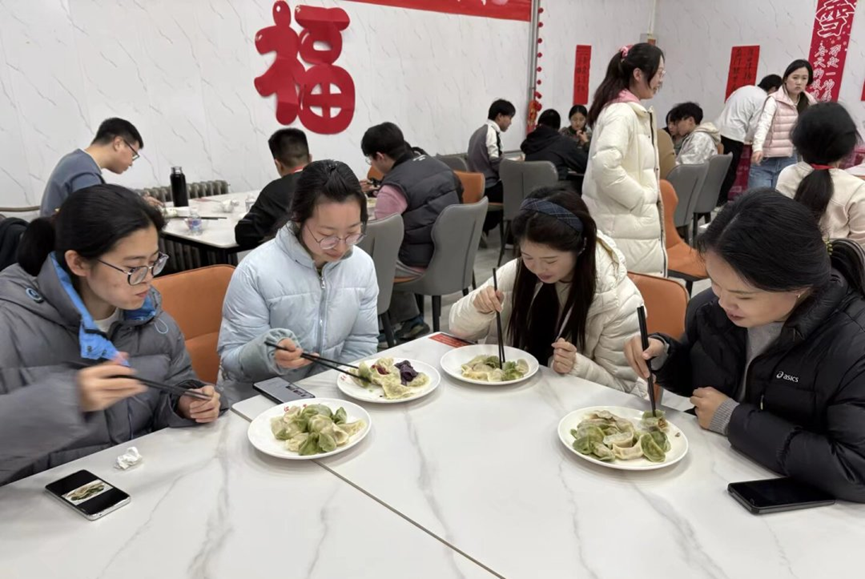 夜幕降临,一锅锅热气腾腾的饺子陆续出锅,鲜香四溢。师生党员围坐一桌,共品劳动成果,在热气缭绕中分享入党初心、交流学习感悟、畅谈成长收获。“没想到党委这么贴心,刚考完研就吃到了暖心饺子,感觉特别温暖,也感受到了党组织的关怀。”一名考研学生动情地说。