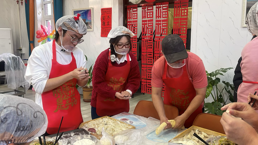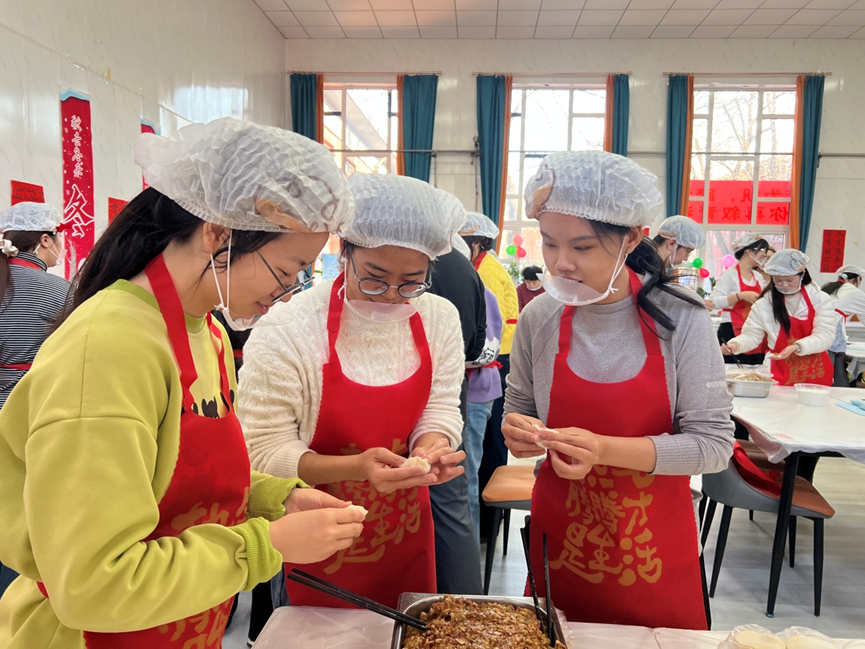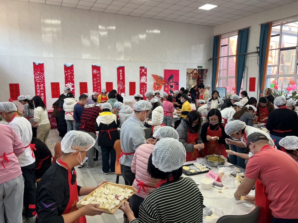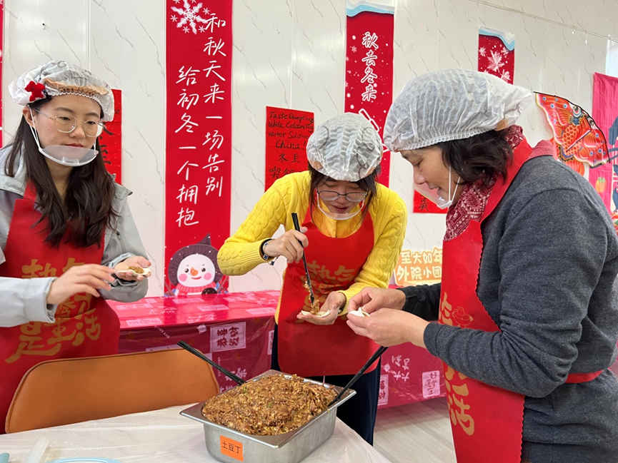 为深入学习贯彻习近平文化思想,传承中华优秀传统习俗,切实发挥基层党组织战斗堡垒作用和党员先锋模范作用,将党性教育与育人实践深度融合,12月21日,外国语学院党委以冬至节气为契机,精心策划开展“多语传承话民俗、师生共建送祝福”主题党日活动。学院党委班子成员带头参与,100余名师生党员齐聚一堂,用4个小时精心包制12000个暖心饺子,在北院食堂的大力支持下,分批煮熟免费提供给学院全体师生作为冬至晚餐,让党性温情与节日暖意浸润人心,进一步深化“学院如家”的家文化建设内涵。