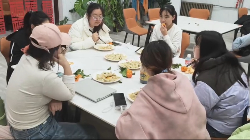 夜幕降临,一锅锅热气腾腾的饺子陆续出锅,鲜香四溢。师生党员围坐一桌,共品劳动成果,在热气缭绕中分享入党初心、交流学习感悟、畅谈成长收获。“没想到党委这么贴心,刚考完研就吃到了暖心饺子,感觉特别温暖,也感受到了党组织的关怀。”一名考研学生动情地说。